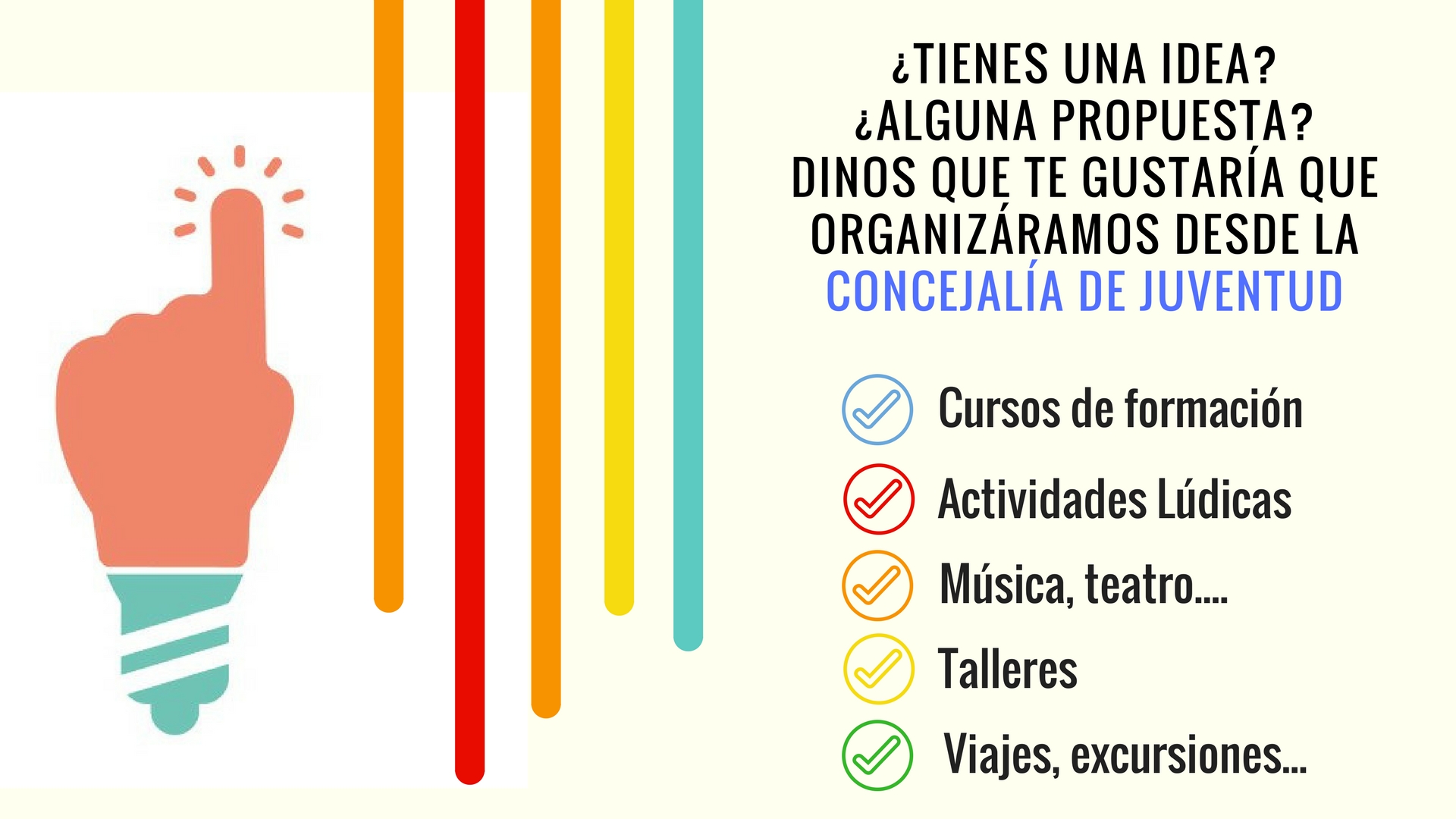 Tens una idea? Vols que es realitze en Nàquera alguna activitat concreta? Algun taller? Algun concert? Algun event? Si vols fer-nos una sugerència, ompli aquest formulari. Estem esperant les teues propostes, en la mida del possible tractarem d'atendre-les. Som tot "oïdes".
